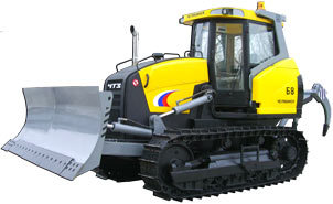Трактор приспособлен под установку лазерной системы для нивелирования поверхности и выполнения работ с высокой точностью по заданной программе. -