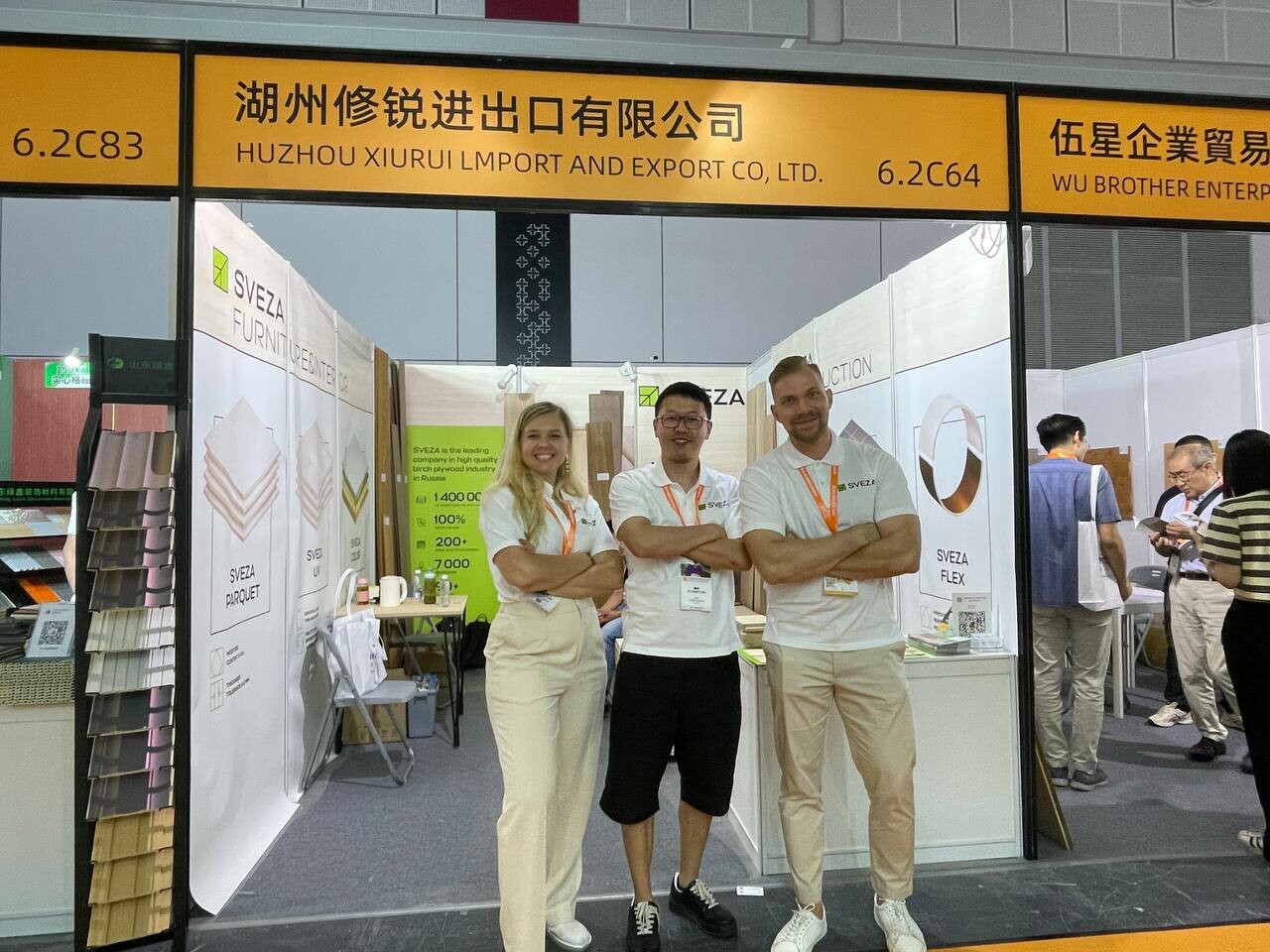 «Свеза» является одним из лидеров российского лесопромышленного комплекса (ЛПК) и крупнейшим производителем березовой фанеры в мире. На совместном стенде с китайским дистрибьютером Huzhou Xiurui lport and export CO, Ltd презентовано двухслойное напольное покрытие из русской древесины. Компании сотрудничают с 2022 года, и российско-китайская коллаборация уже заинтересовала потребителей Восточной Азии.