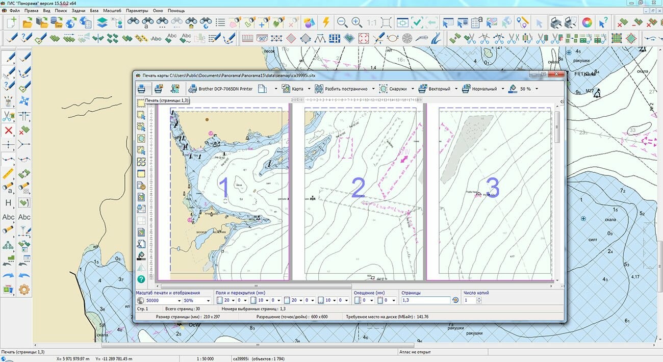 Доработана задача «Печать карты». Добавлена возможность вводить номера печатаемых страниц. Поддерживается перечисление номеров и диапазонов страниц. Например: «1,5,7-12». При выборе на схеме печатаемых страниц с помощью комбинаций Левая кнопка мыши + Ctrl или Shift автоматически выбранные страницы указываются в поле «Страницы». Для восстановления страниц, указанных пользователем, необходимо выбрать режим «Восстановить пользовательские настройки». Поле для ввода страниц расположено в нижней части диалога.