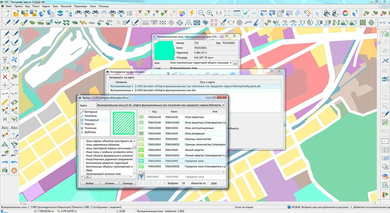 В КБ «Панорама» разработана ГИС «Панорама» версии 15.5.0. В новой версии программы обеспечивается не только автоматическое распознавание и создание по данным ДЗЗ контуров участков полей, объектов гидрографии, зданий и сооружений, дорог, высокоствольных лесов, порослей, вырубок, но и запрос и обработка адресной информации для автоматического заполнения атрибутов объектов. Дополнен состав инструментов по редактированию карты, ведению атрибутивных баз данных, выполнению оверлейных операций. Обновлен блок кадастровых и геодезических задач для ведения базы кадастровых работ, формирования отчетов «Карта-план территории», «Технический план здания» и других.