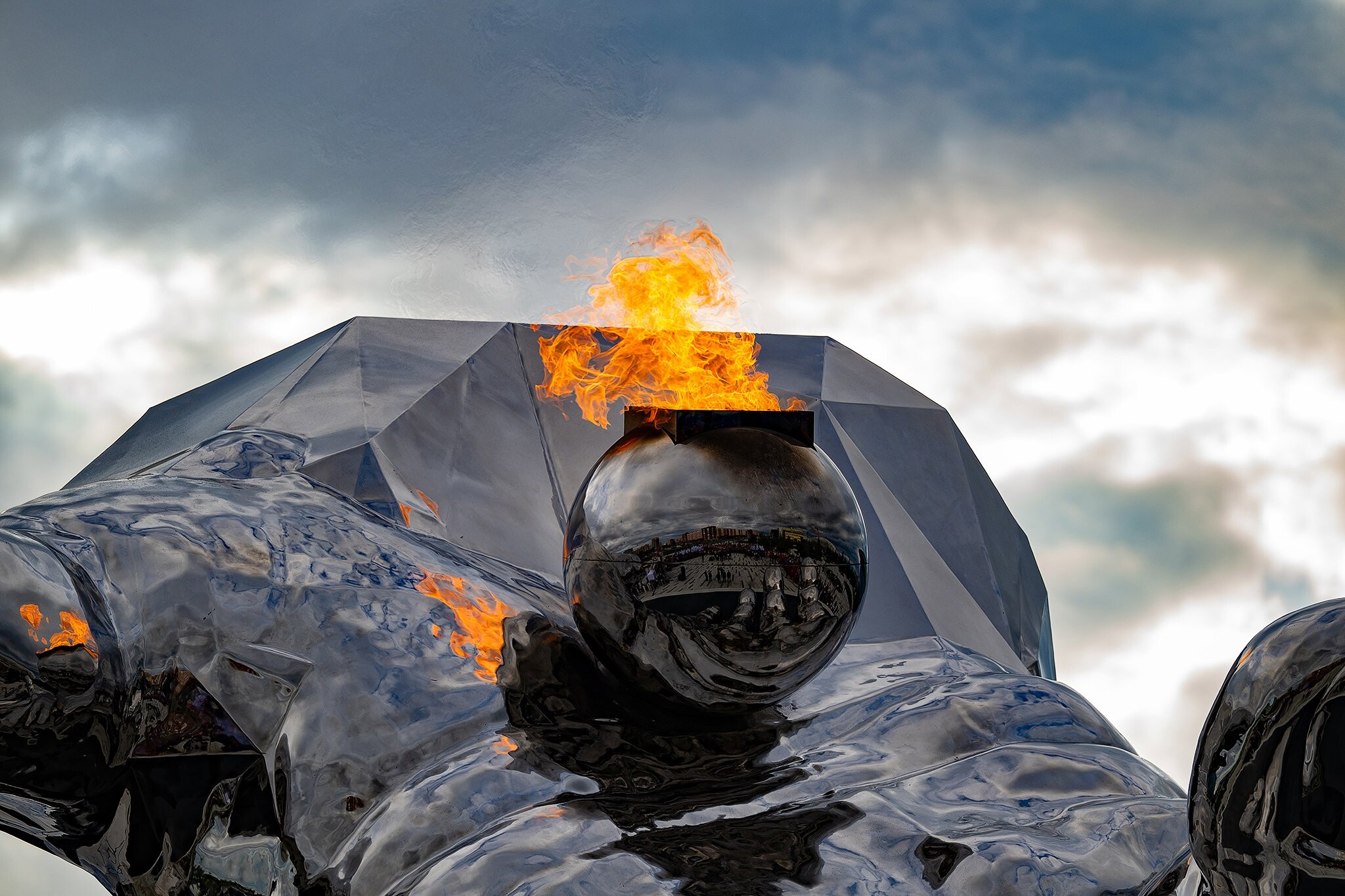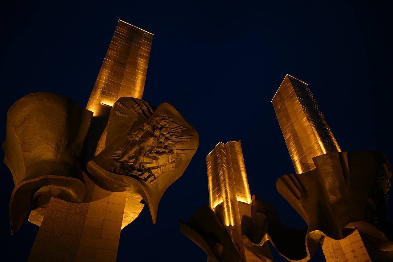 Вечный огонь монумента зажгли на торжествах в честь полувекового юбилея города.