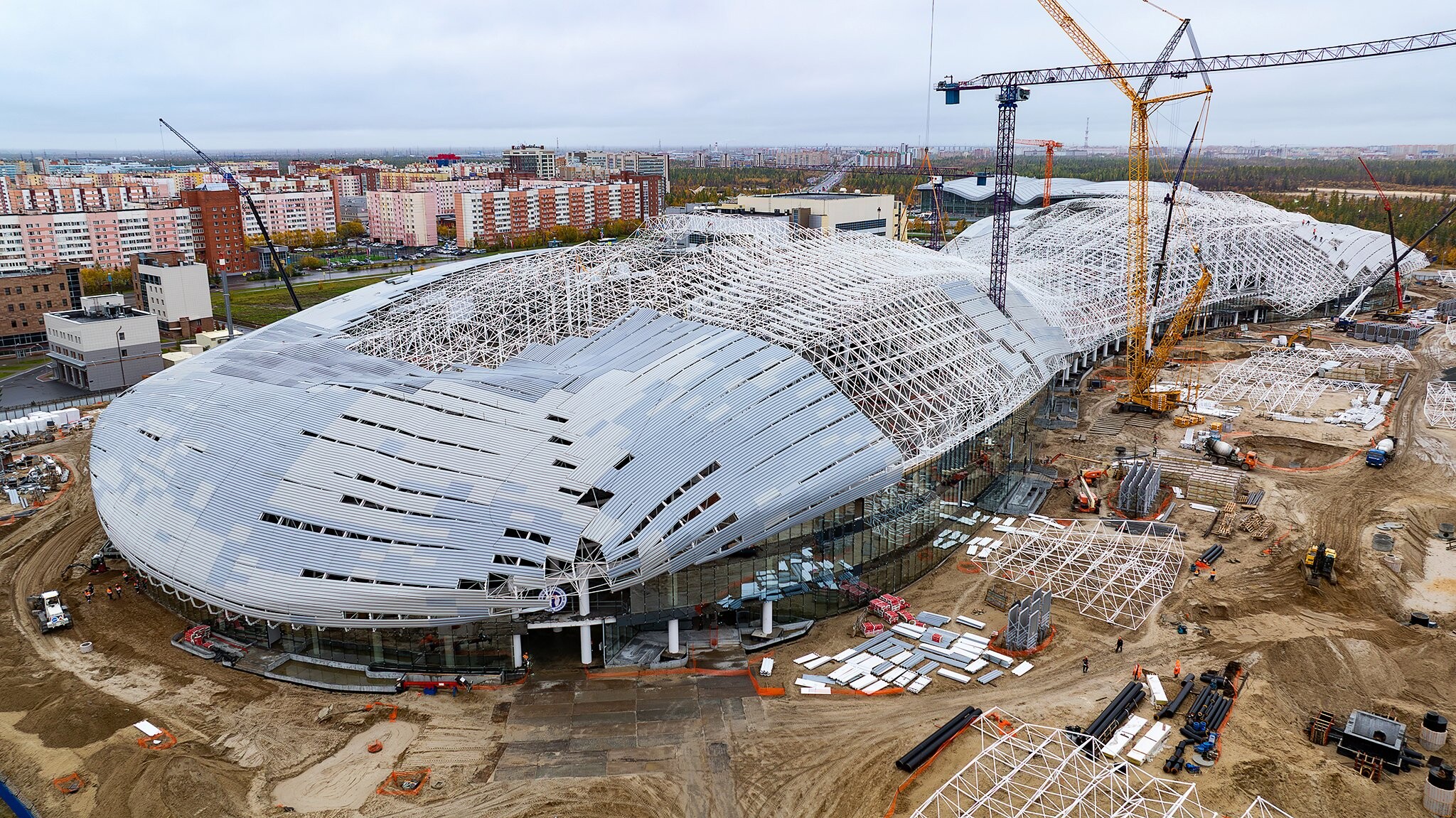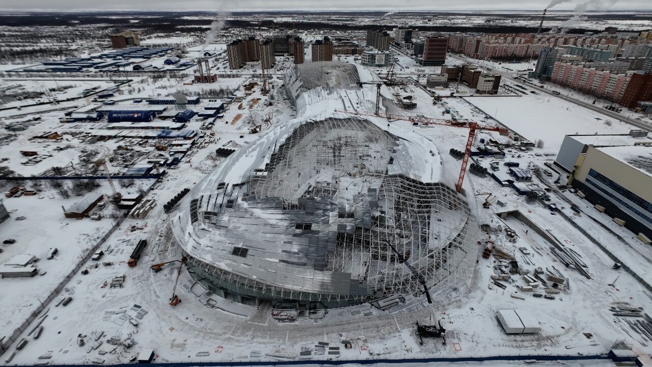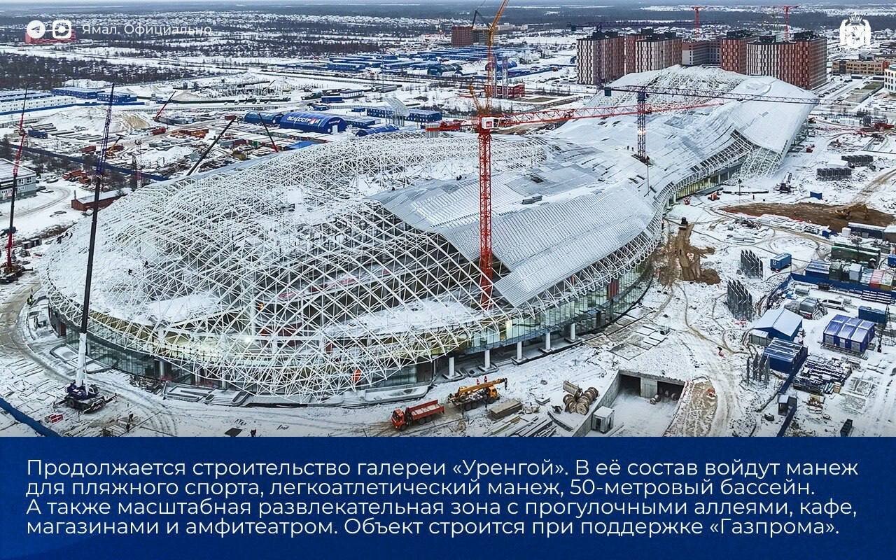 Продолжается строительство галереи «Уренгой» — уникального сооружения в форме снежной дюны площадью более 80 тысяч м².