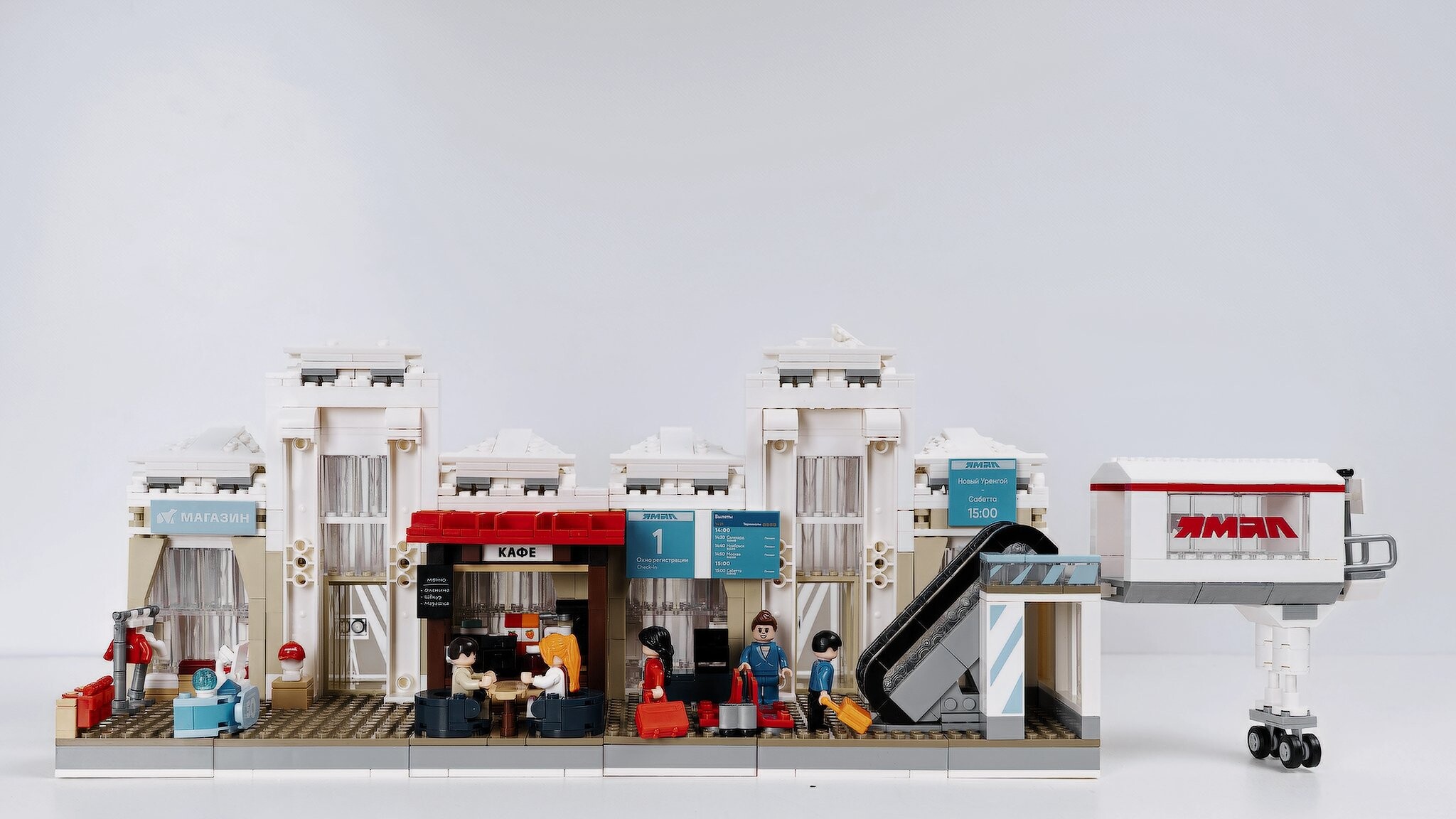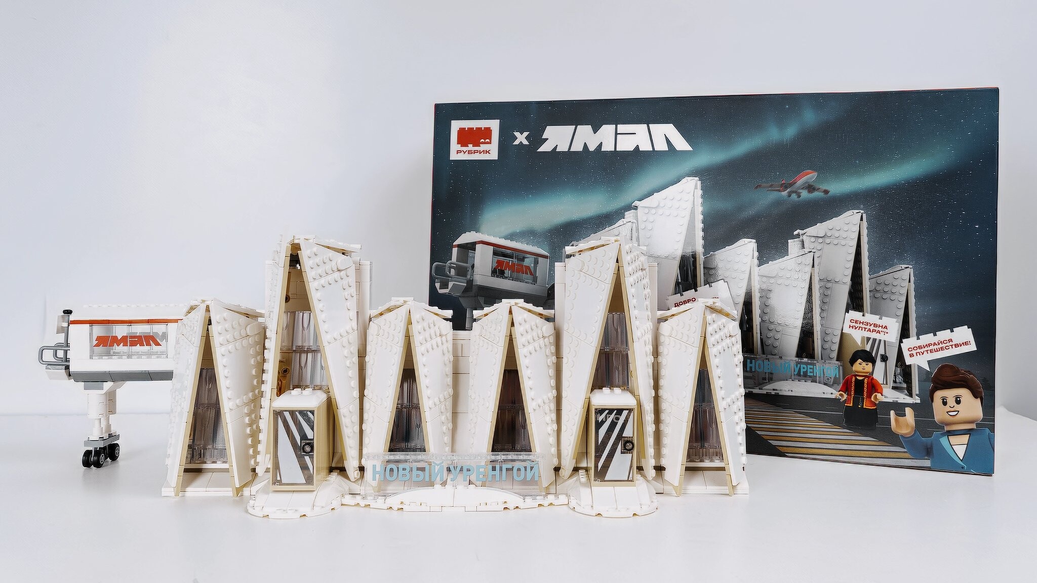 Центральным набором ямальской серии стал «Аэропорт города Новый Уренгой» — модель шириной 50 и высотой 20 сантиметров, состоящая из 1 318 деталей. Конструктор отличается высокой точностью исполнения: внутри расположены мини-магазин с региональными товарами, стойки регистрации, информационные табло и интерьерные детали.