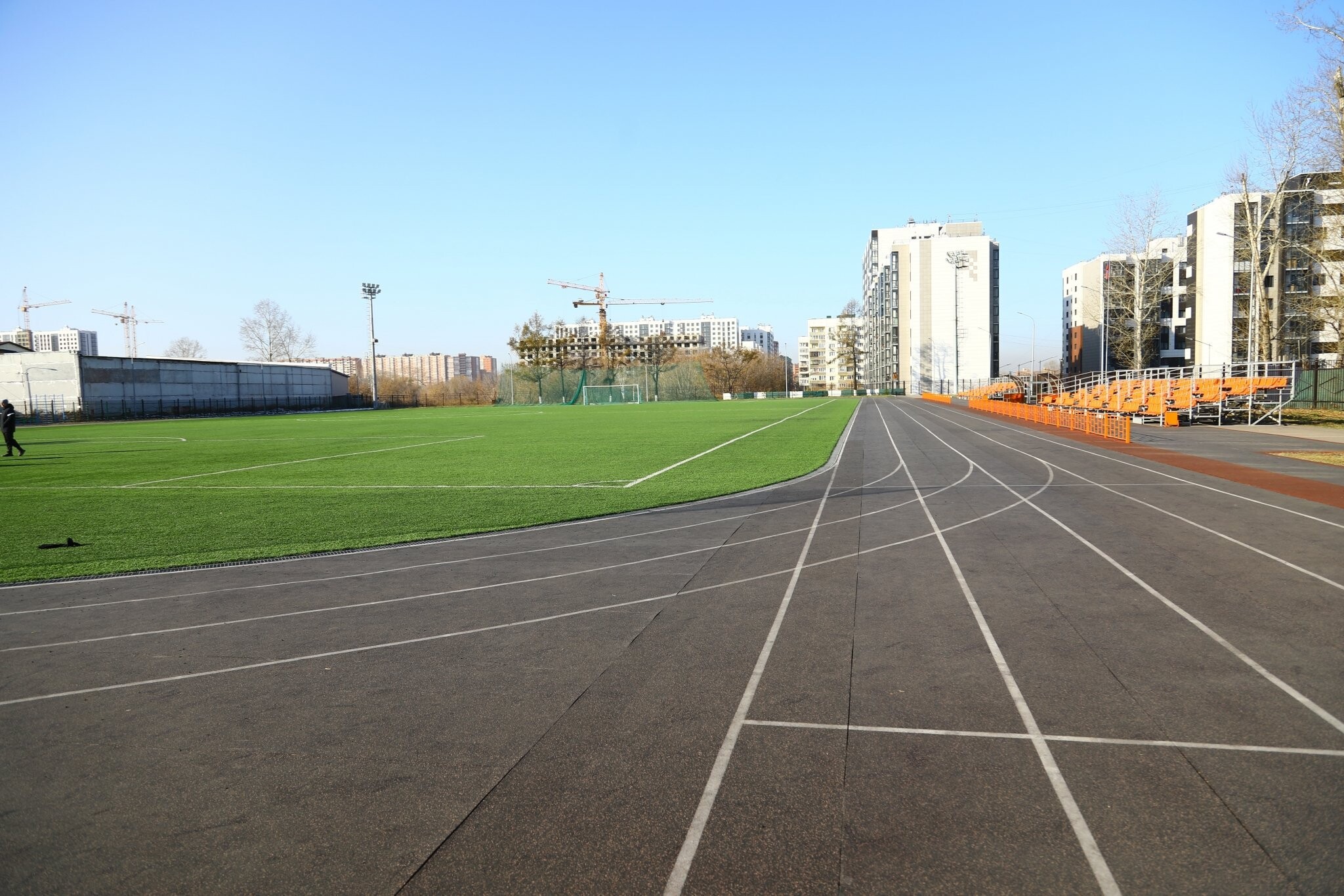Комплекс построили в 1968 году, а в 2016-м его передали из федеральной собственности в муниципальную. И вот с тех пор тут многое изменилось — город сразу сделал хороший ремонт в зале, раздевалках и остальных помещениях: заменили старые окна, двери, электрику, сантехнику, систему отопления, тепловой пункт. Тогда же был облицован фасад, и, разумеется, обновили игровой зал и отдельно стоящее здание раздевалок. Позднее на стадионе появилось новое современное игровое поле с искусственным газоном и трибунами для болельщиков. Также смонтировали уличное освещение, купили технику для заливки льда, оборудовали гараж для её хранения. Каждый год зимой на поле заливают каток — им пользуются спортсмены во время тренировок, а после 20 часов стадион открывается для массовых катаний — вход свободный.